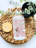 Books Iced Coffee Pink Frosted Glass Can/Frosted Mug