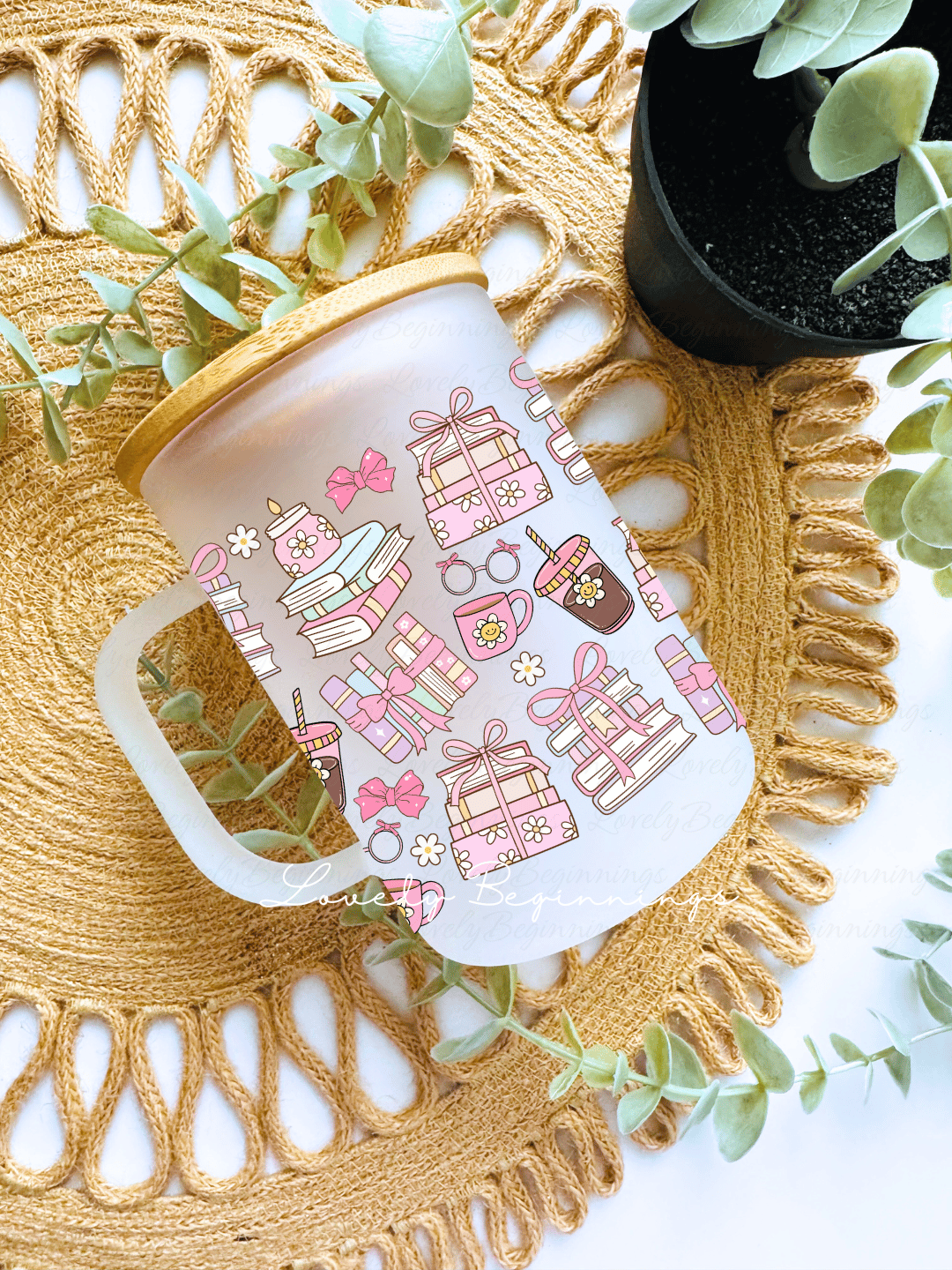 Includes a bamboo lid and glass straw for that perfect aesthetic touch. Whether you're treating yourself or gifting someone special, this frosted glass can is both functional and fun!