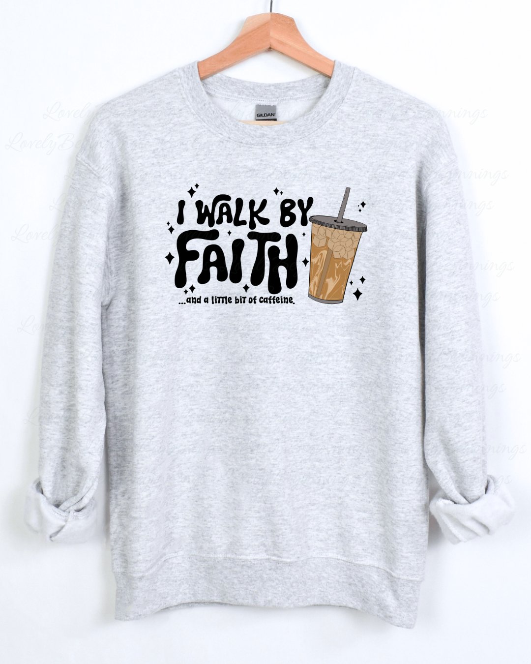 I Walk By Faith And Caffeine Iced Coffee Sweatshirt